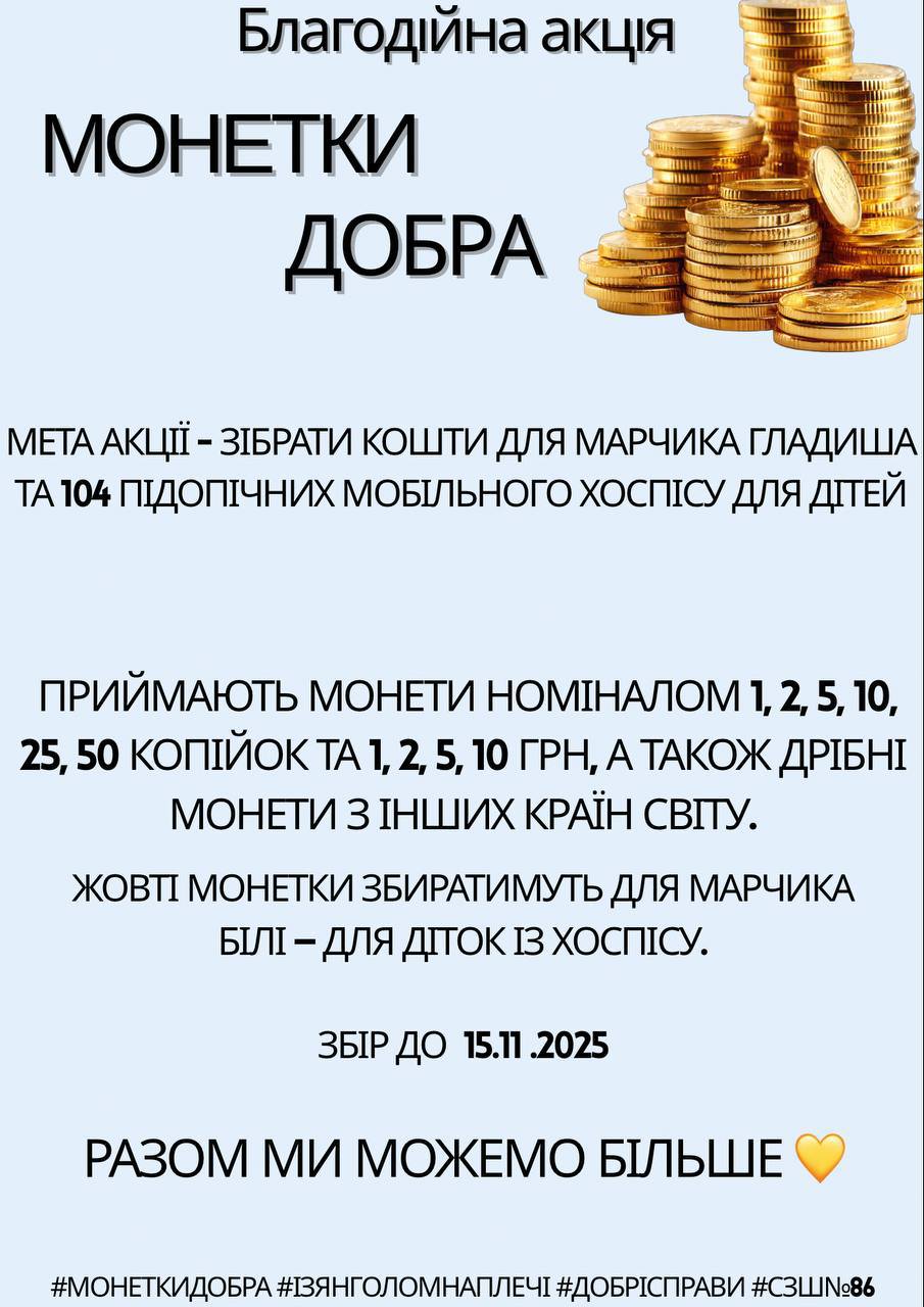 Наша школа долучається до благодійної акції “Монетки добра”!