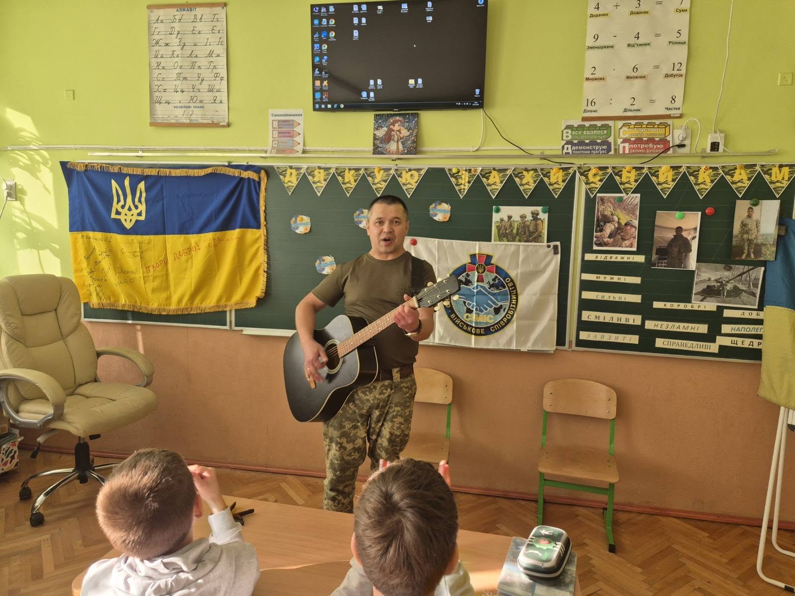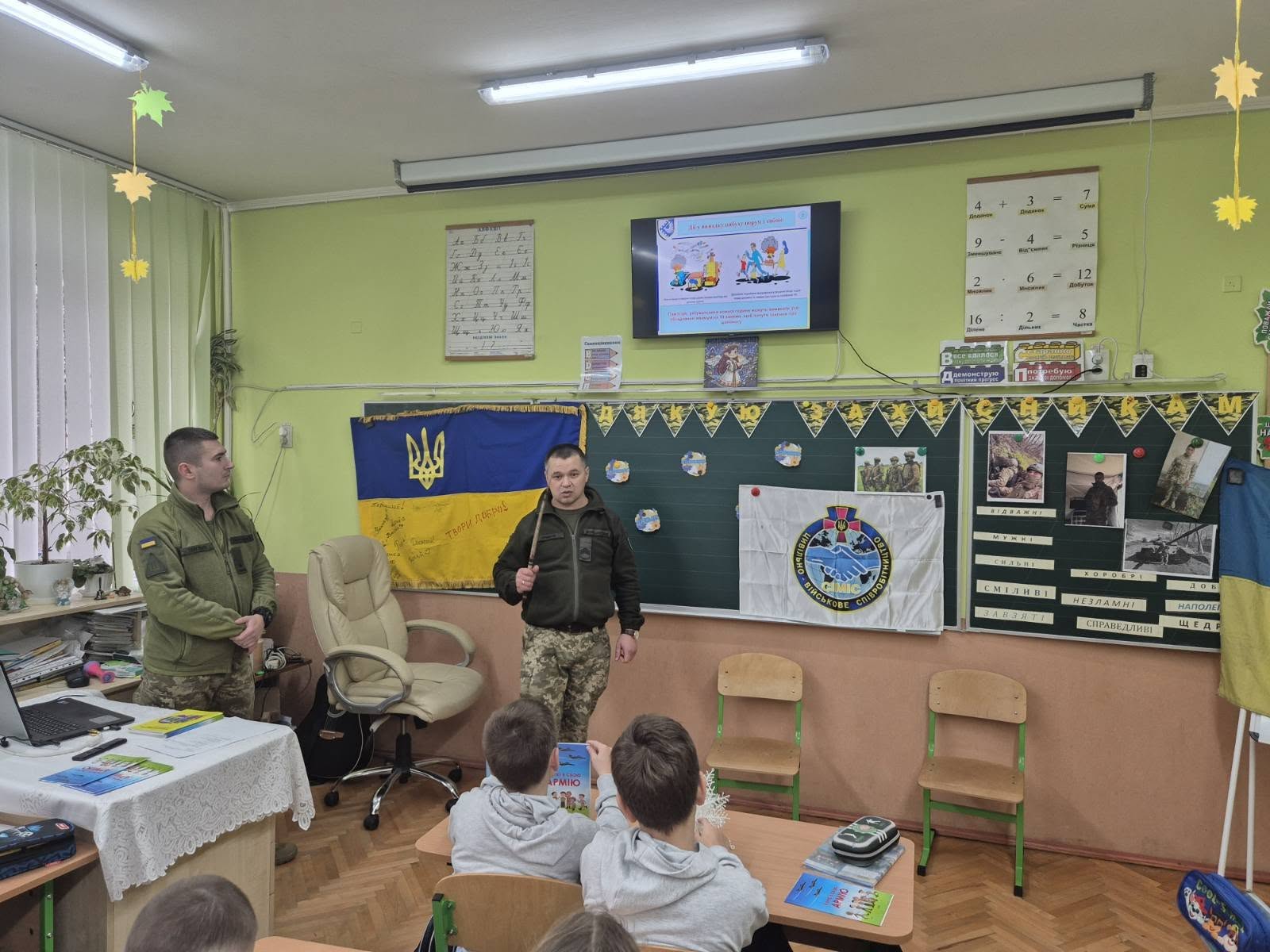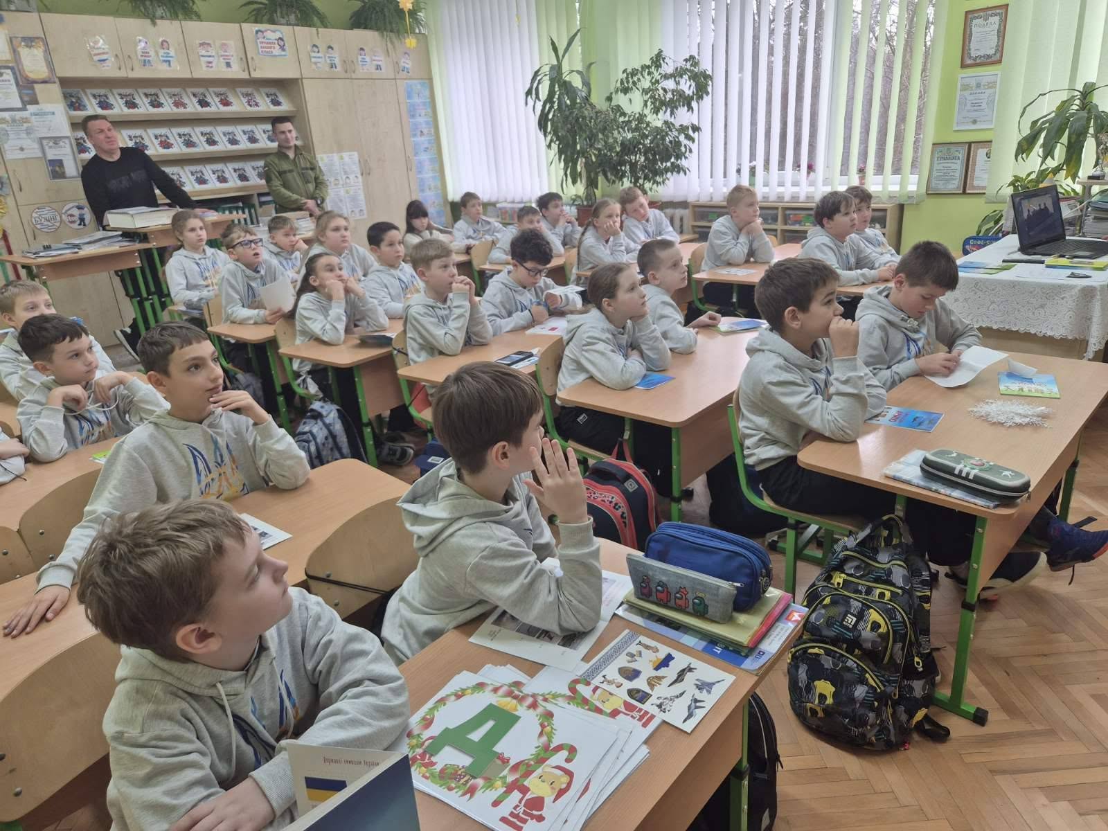Діти уважно слухали розповідь, запитували військових,