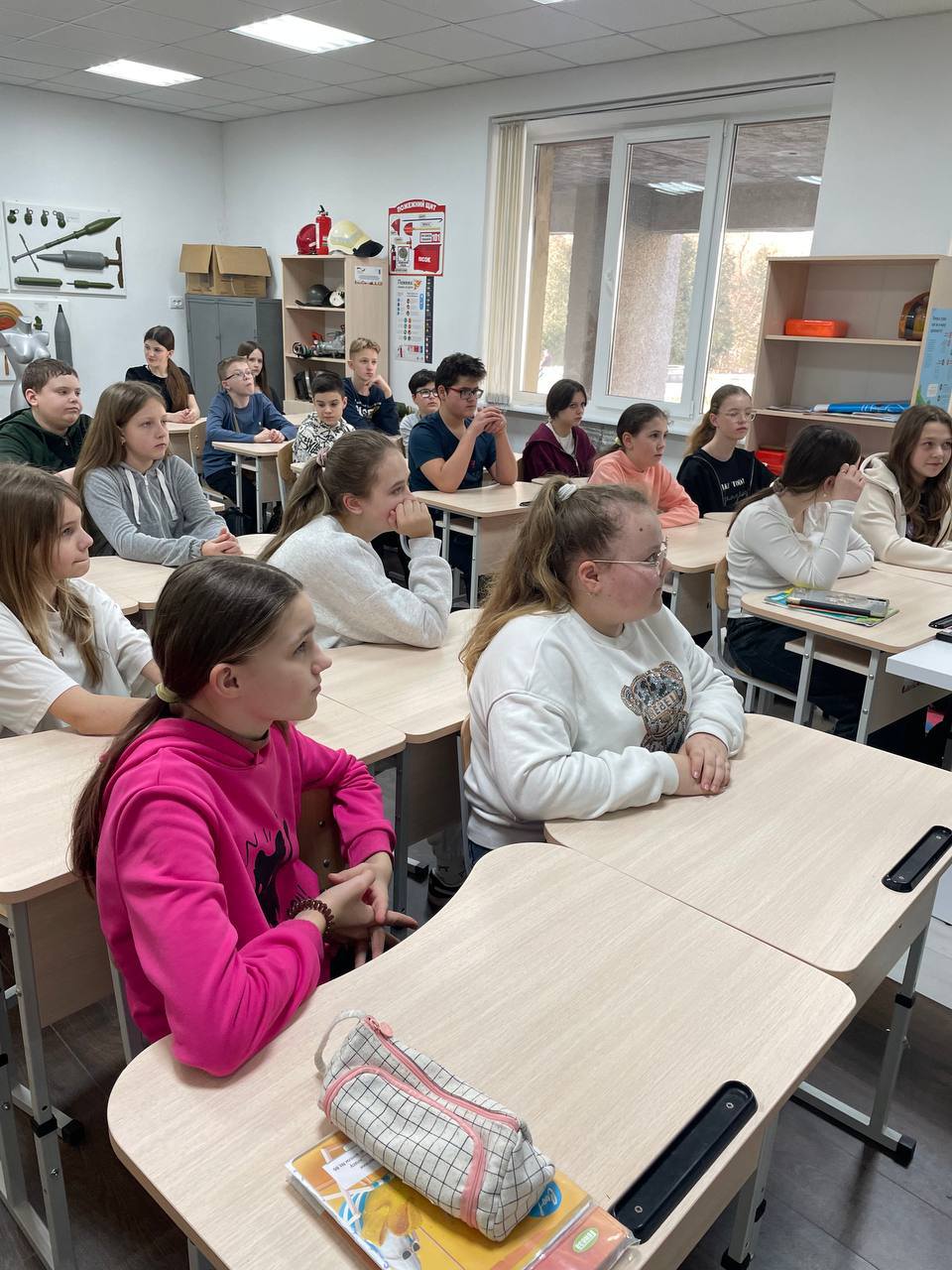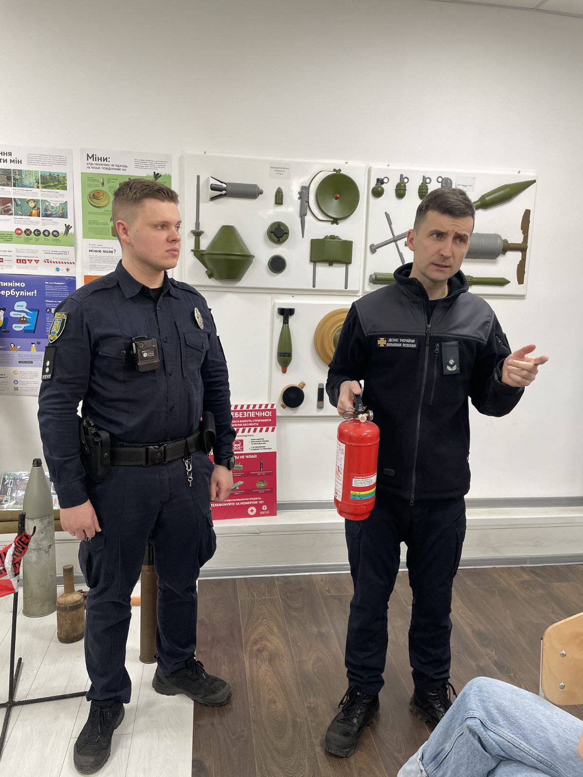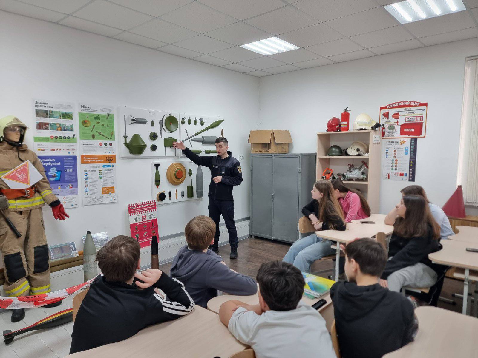 На уроці обговорили чіткий алгоритм дій даних служб, а також розповіли дітям про те як вони мають діяти у разі екстрених ситуацій та як діяти, щоб убезпечити себе та оточуючих. Також детально поговорили про вибухонебезпечні прездмети, як діяти при їх виявленні. Інспектор ДСНС детальніше розповів про міни, які зображені на стенді у класі безпеки та принцип їх дії, а також яку загрозу вони несуть.