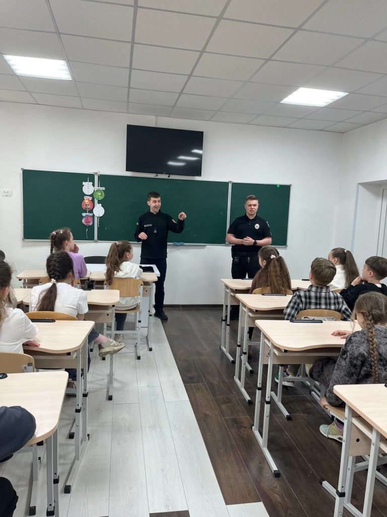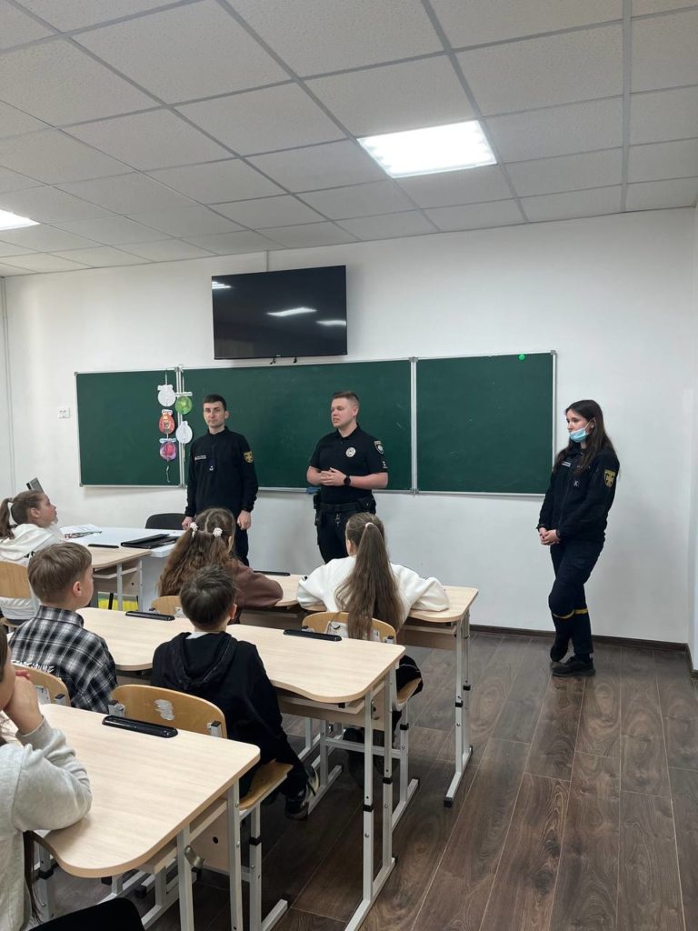 Сьогодні для учнів 4-Б класу поліцейський інспектор СОБ та Головний Інспектор відділу№6 Львівського міського управління цивільного захисту та превентивний діяльності Ярослав Сидор спільно провели заняття. Темою занять стали основні функції ДСНС та НПУ. На уроці обговорили чіткий алгоритм дій даних служб, а також розповіли дітям про те як вони мають діяти у разі екстрених ситуацій на який номер телефонувати та як діяти щоб убезпечити себе та оточуючих. Також детально поговорили про вибухонебезпечні предмети, як діяти якщо виявили їх, що категорично не робити. Інспектор ДСНС детальніше розповів про міни, які зображені на стенді у класі безпеки та розповів принцип дії, а також яку загрозу вони несуть.